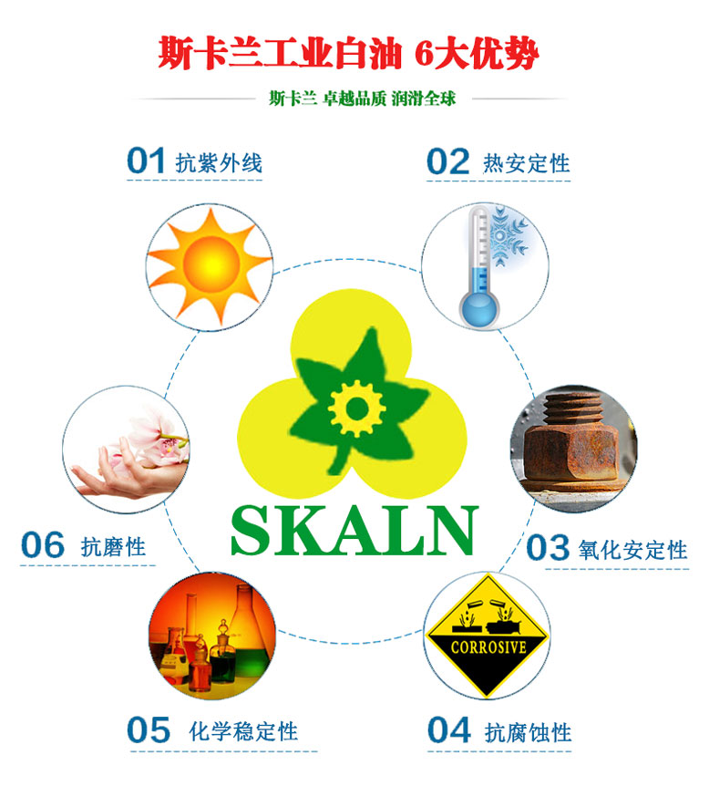 斯卡蘭(SKALN)工業(yè)白油的產(chǎn)品介紹:按粘度分為2號(hào)白油、3號(hào)白油、5號(hào)白油、7號(hào)白油、10號(hào)白油、15號(hào)白油、26號(hào)白油、32號(hào)白油、46號(hào)白油、68號(hào)白油、100號(hào)白油等牌號(hào)