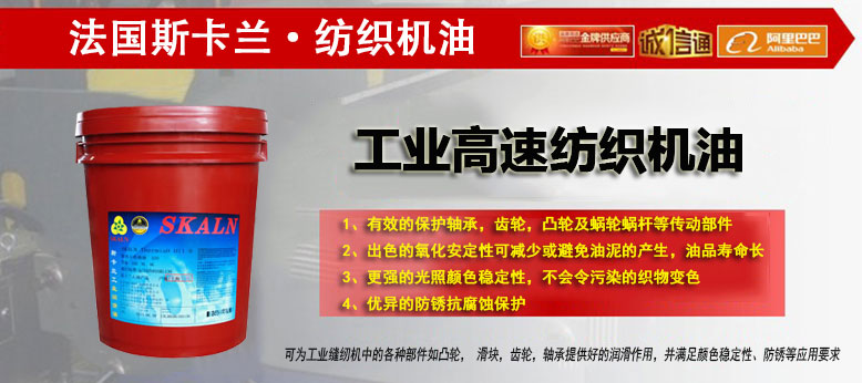 斯卡蘭(SKALN)紡織機(jī)油就是斯卡蘭(SKALN)工業(yè)縫紉機(jī)潤(rùn)滑油,用于高速縫紉機(jī)的潤(rùn)滑。本系列產(chǎn)品由高穩(wěn)定性的基礎(chǔ)油及優(yōu)質(zhì)添加劑配制而成,具有優(yōu)異的熱穩(wěn)定性、氧化安定性和光照顏色穩(wěn)定性,同時(shí)提供優(yōu)異的防銹性。斯卡蘭(SKALN)縫紉機(jī)油可為工業(yè)縫紉機(jī)中的各種部件如凸輪, 滑塊,齒輪,軸承提供極好的潤(rùn)滑作用,并滿足顏色穩(wěn)定性、防銹等主要應(yīng)用要求。